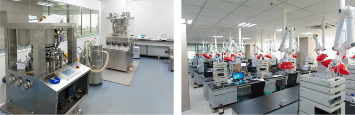 研發(fā)中心化學(xué)部門擁有150余個(gè)全鋼通風(fēng)櫥及常規(guī)有機(jī)合成裝置;高溫及低溫反應(yīng)裝置(5L~100L;-70~+200℃),惰性氣體保護(hù)及無水無氧反應(yīng)系統(tǒng);0.5L-20L高壓氫化反應(yīng)釜;API生產(chǎn)基地具備數(shù)十臺100L-1000L反應(yīng)釜及200L高壓氫化反應(yīng)釜;信息中心擁有SciFinder, Reaxys等專業(yè)數(shù)據(jù)庫來支持各項(xiàng)研發(fā)需求,使用CBIS系統(tǒng)數(shù)據(jù)庫來儲存和管理內(nèi)部數(shù)據(jù)。研發(fā)中心質(zhì)量分析和藥物制劑部門主要儀器設(shè)備均為國際國內(nèi)知名品牌: