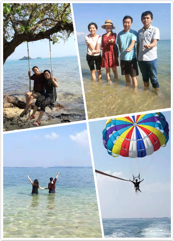 在泰國除了各式各樣的寺廟建筑,海島也是絕不能錯(cuò)過的。本次優(yōu)秀員工之行來到了以沙子聞名的沙美島。這里的沙子黃里透白,如面粉一樣細(xì)嫩,鋪成又長又寬的沙毯,仿佛為太平洋鑲上了金色的花邊一般。小伙伴們在沙美島上欣賞綺麗的星空朗月,參加當(dāng)?shù)靥厣捏艋鹜頃?huì),體驗(yàn)刺激的海島游樂項(xiàng)目,度過了一段難忘的美好時(shí)光。