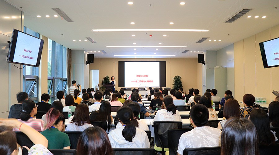 2019年6月29日上午,細(xì)雨蒙蒙阻擋不了慕名而來的人們紛至沓來的腳步,《非城勿擾》嘉賓主持、江蘇省委黨校教授、南京大學(xué)社會(huì)心理學(xué)博士黃菡老師,應(yīng)邀走進(jìn)華威醫(yī)藥,為約150位華威員工帶來了一場(chǎng)精彩紛呈的壓力管理與心理調(diào)適人文講座。