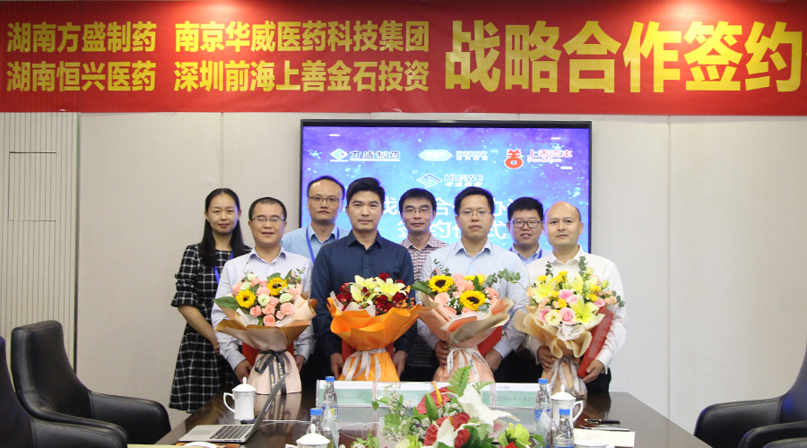 9月26日,南京華威醫(yī)藥科技集團有限公司與湖南方盛制藥股份有限公司、深圳前海上善金石投資管理有限公司、湖南恒興醫(yī)藥科技有限公司在南京舉行全面戰(zhàn)略合作簽約儀式。