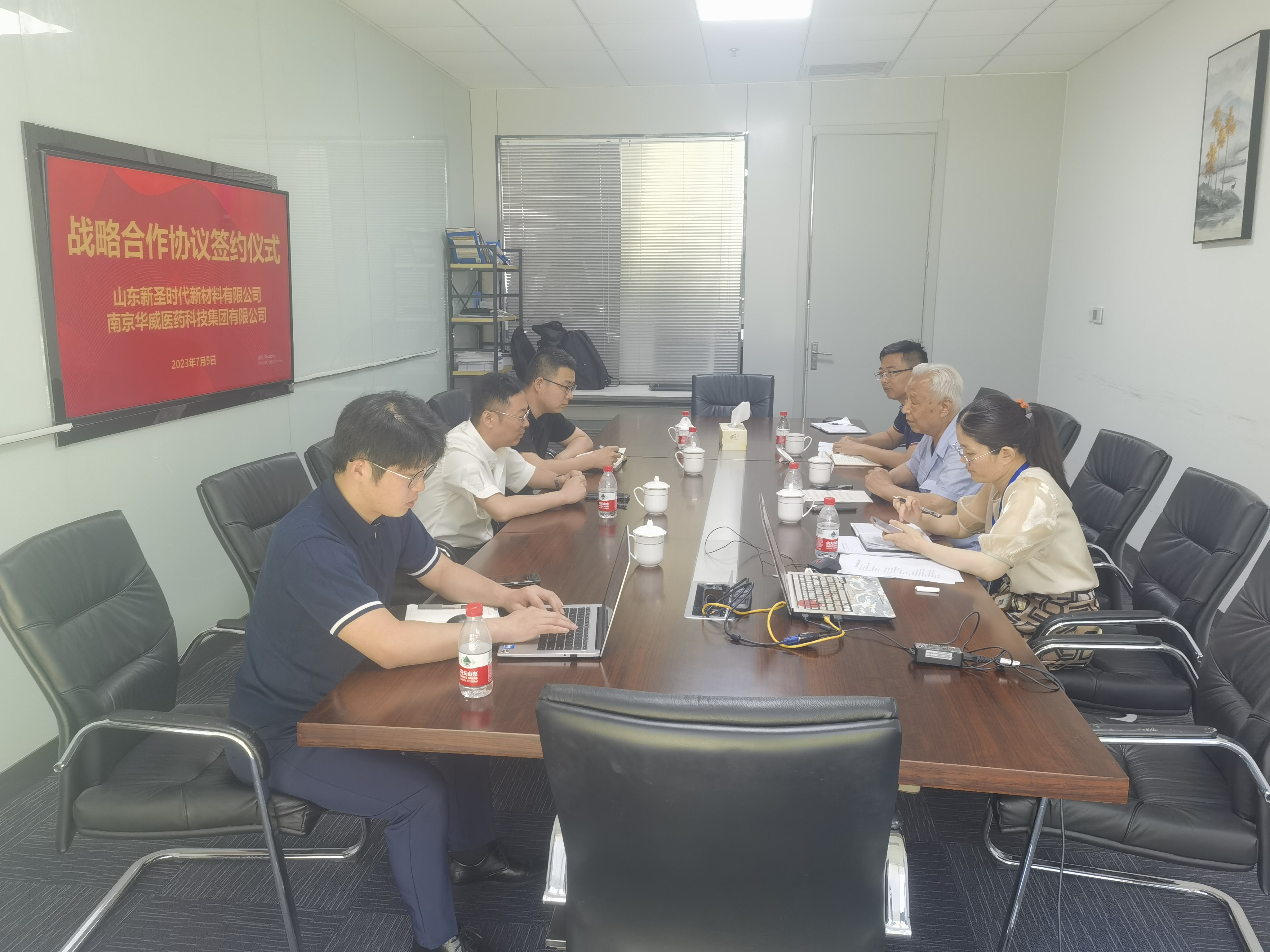 近日,南京華威醫(yī)藥科技集團(tuán)有限公司與山東新圣時(shí)代新材料有限公司在華威醫(yī)藥舉行戰(zhàn)略合作簽約儀式。山東新圣時(shí)代新材料有限公司醫(yī)用敷料SIS總經(jīng)理趙軍、華威醫(yī)藥研發(fā)部部長付夏夏,世界中醫(yī)藥學(xué)會聯(lián)合會經(jīng)皮給藥專委會會長梁秉文、秘書長劉子修等共同出席。